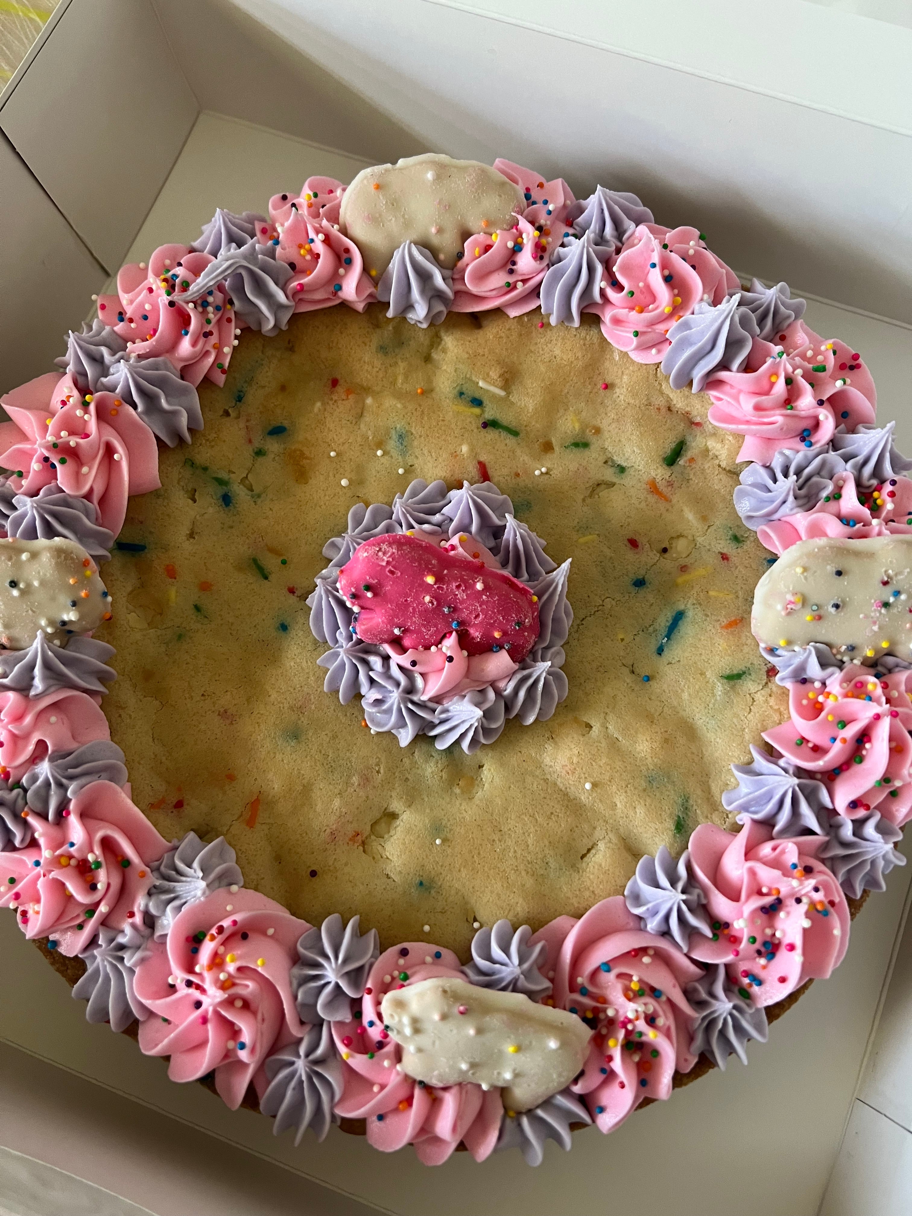 Big, bold, and baked with barely contained emotions. Our 9" cookie cakes are perfect for birthdays, breakups, or just making a dramatic statement with frosting.