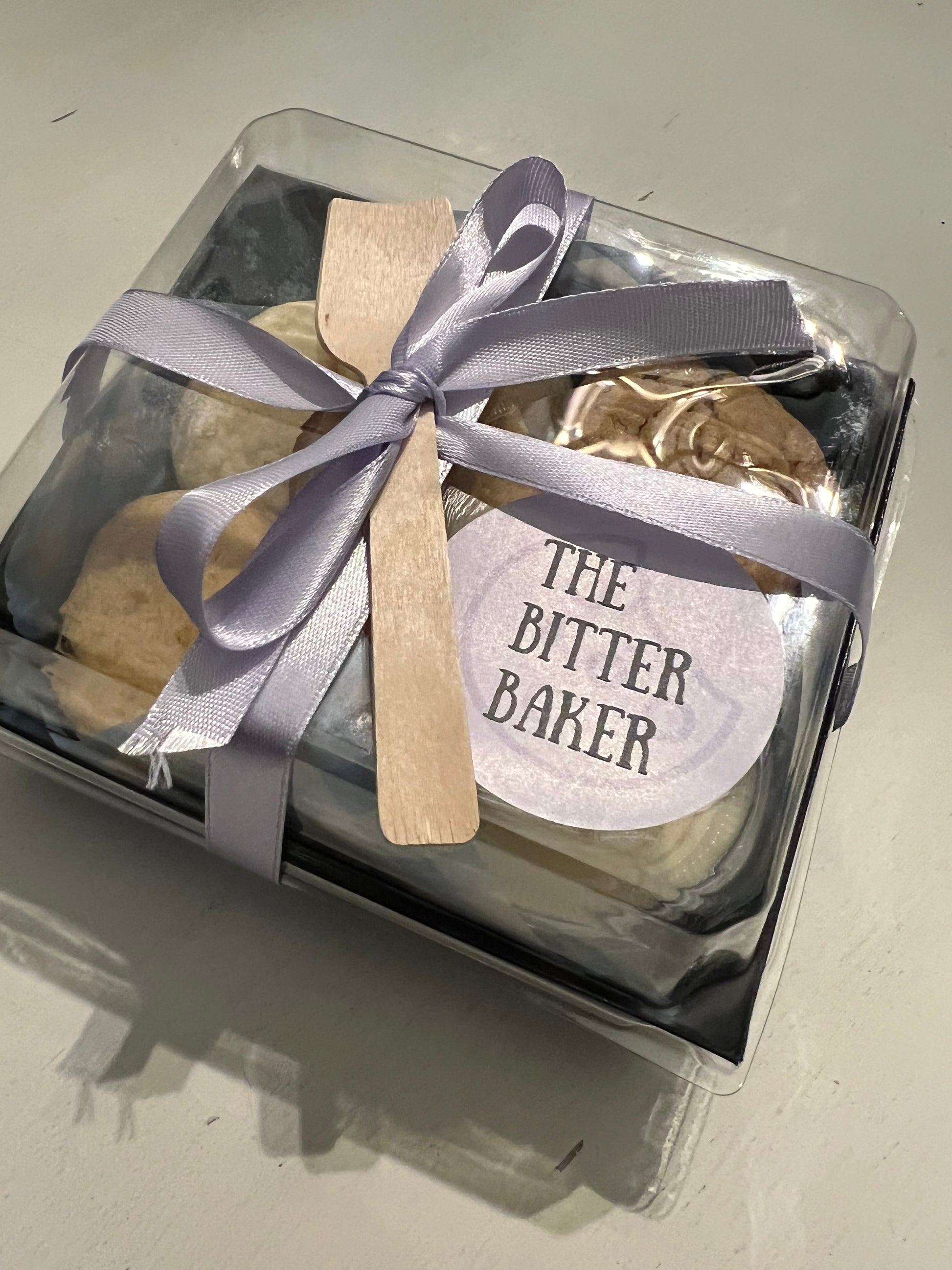 At The Bitter Baker, we believe in small treats with big flavor (and no, we’re not here to hold your hand while you choose). Our bite-size cookie boxes come in deliciously simple options. If you would like something a little more custom with multiple flavors please send us a message!
