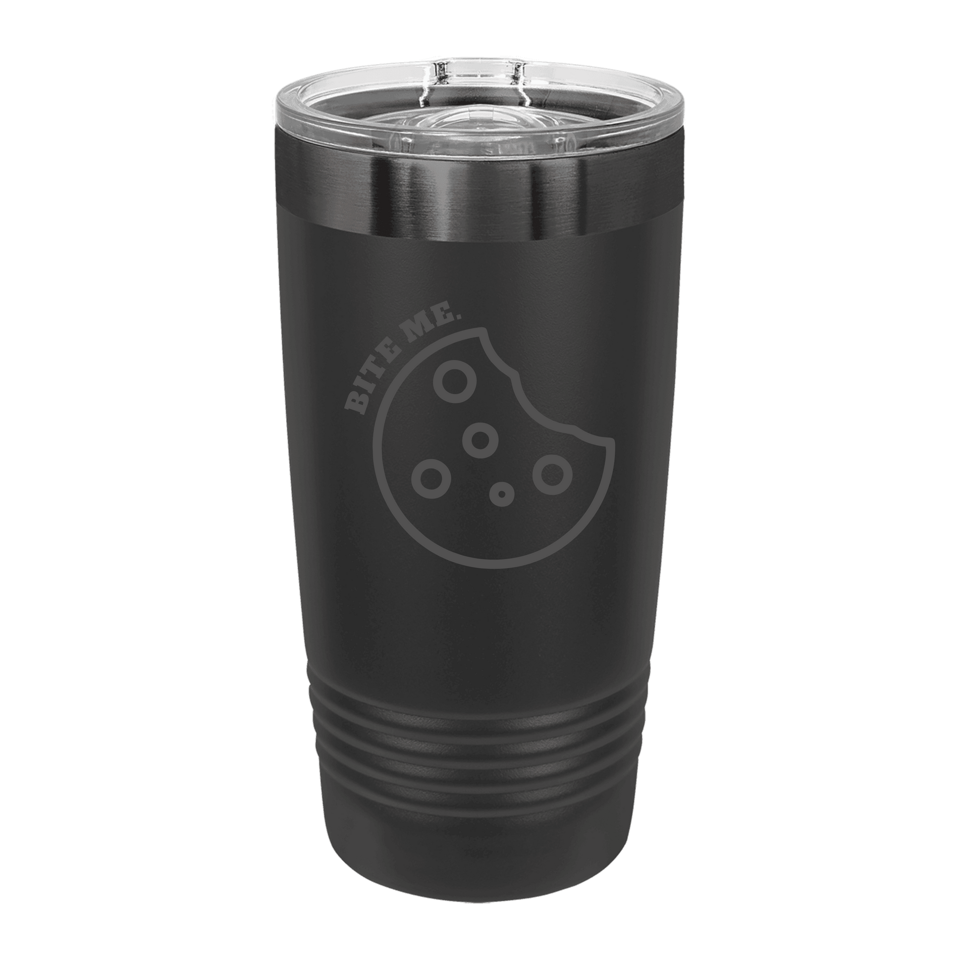 Whether you're sipping coffee or cold brew, our "Bite Me" tumbler delivers the same energy as our cookie cakes: sweet on the outside, a little salty on the inside.